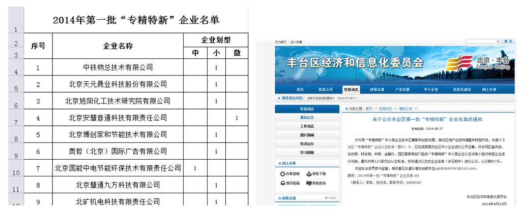 我公司已通過(guò)認(rèn)定成為豐臺(tái)區(qū)第一批“專精特新”企業(yè)