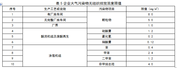 2、無(wú)組織排放污染物濃度限值